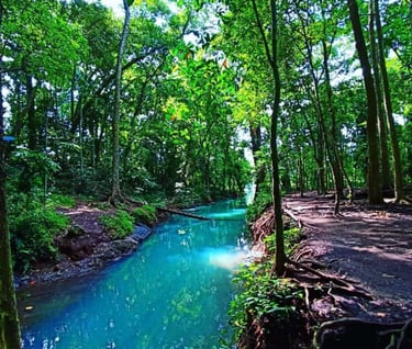 hamparan sawah hijau,perbukitan, dan hutan tropis