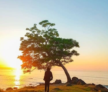Bebatuan Hitam Eksotis, Pohon Ikonik (Pohon Jomblo), Pasir Putih dan Air Jernih, Panorama Senja