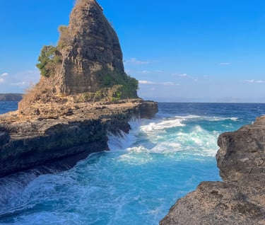 Tanjung Bloam adalah definisi nyata dari keindahan alam liar yang eksotis di ujung selatan Lombok Timur, menawarkan panorama dramatis yang memadukan tebing-tebing cadas berwarna kuning keemasan dengan birunya Laut Selatan yang ganas namun memukau. Berbeda dengan pantai-pantai landai pada umumnya, daya tarik utama tempat ini terletak pada dua formasi tebing karang raksasa yang mengapit teluk kecil satu sisi berbentuk unik menyerupai bakpao dan sisi lain berupa tebing terjal tak beraturan yang menciptakan kontras warna luar biasa saat disinari matahari. Sebagai kawasan konservasi penyu yang jauh dari keramaian massal, Tanjung Bloam menyajikan suasana hening dan privat, menjadikannya destinasi sempurna bagi jiwa petualang yang ingin menikmati kemewahan alam dalam kesunyian mutlak.