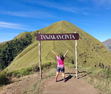 Gunung Rinjani,Lembah Sembalun, dan perbukitan hijau